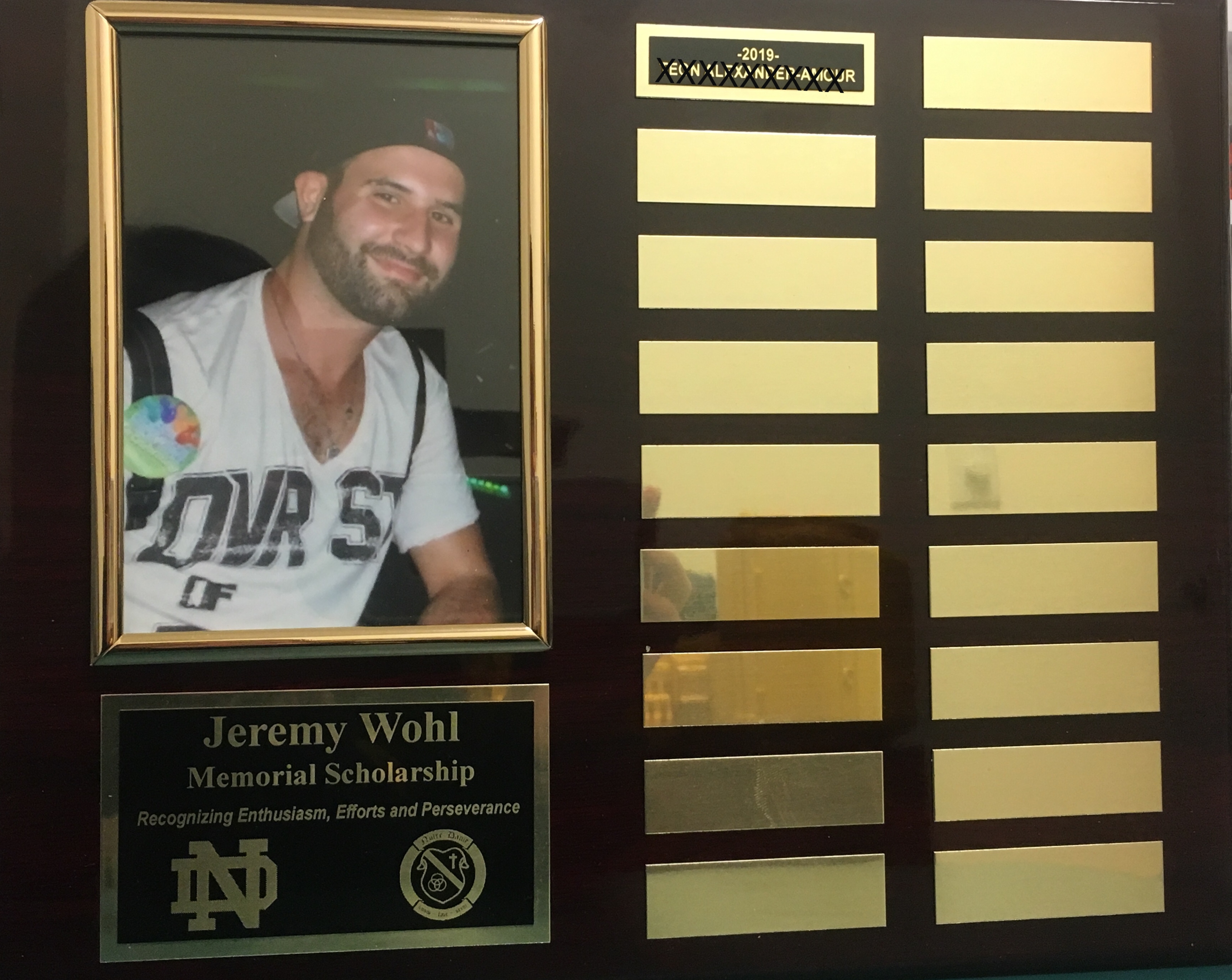 We are pleased to announce that the first annual Jeremy Wohl Education Society Scholarship, of $1000, was presented in May 2019 to a deserving student of Notre Dame Regional High School.